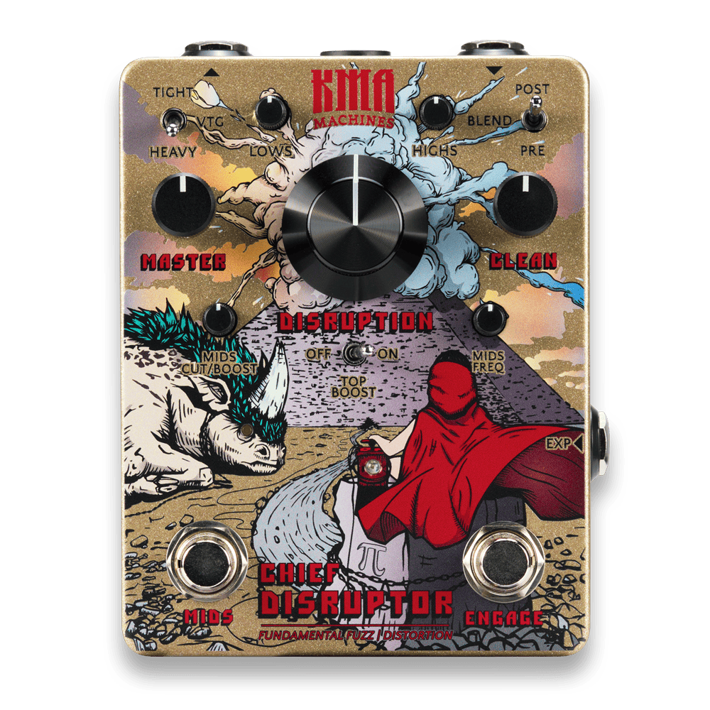 Holding three different Gain Modes, a pre- or post-EQ Clean Blend, active Bass and Treble controls, a foot-switchable and expression-controllable parametric Mid-EQ as well as a switchable top-boost for even more raspy, grinding bite, CHIEF DISRUPTOR is the most flexible, beautifully balanced and LOUDEST muff-style pedal you’ll ever hear!